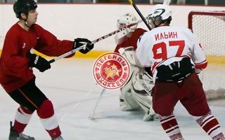 На игру со «Сборной ветеранов латышского хоккея» наша команда отправляется в таком составе: Владимир Мышкин, Игорь Бессонов, Александр Гусев, Владимир Лутченко, Юрий Ляпкин, Сергей Гимаев, Юрий Шаталов, Александр и Владимир Голиковы, Евгений Давыдов, Юрий Лебедев, Валерий Каменский, Игорь Мишуков, Андрей Коваленко, Роман Ильин, Александр Якушев.